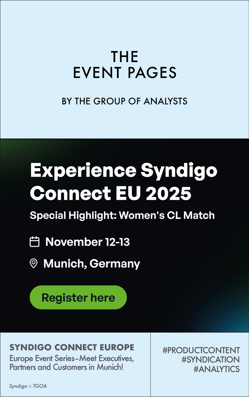 This is your ultimate opportunity to meet Syndigo executives, customers, and partners, share insights on industry trends, and more! Join us at Munich’s Allianz Arena, November 12–13.